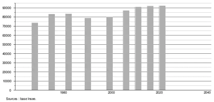 - Population municipale légale en vigueur au 1er janvier 2024, millésimée 2021, définie dans les limites territoriales en vigueur au 1er janvier 2023, date de référence statistique : 1er janvier 2021.
