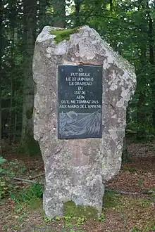 Dans la nuit au 25 au (après l’armistice du 22 juin 1940), le colonel Bourgeois du 154e R.I.F. décide de brûler le drapeau du régiment. Une fois la crémation accomplie, le commandant Bouchon et le capitaine Boisselet procèdent à l'enfouissement de la pointe de lance de la hampe, dans un petit bois situé près du cimetière du Donon.