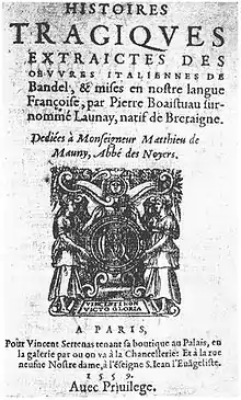 Histoires Tragiques, extraictes des œuvres italiennes de Bandel, par Pierre Boisteau, surnommé Launay