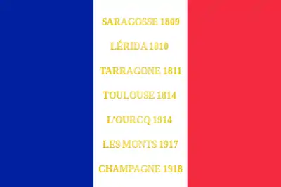 (*) Bataille portée au drapeau du régiment. Saragosse 1809, Lérida1810, Tarragone 1811, Toulouse 1814, L'Ourcq 1914, Les Monts 1917, Champagne 1918.