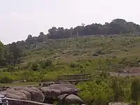 Pendant ce temps, Chamberlain a détaché la compagnie B de son régiment et des éléments du 2nd U.S. Sharpshooters, leur ordonnant de se positionner à l'abri derrière un mur de pierre à 150 yards (137 m) à l'est, espérant se prémunir contre un enveloppement (en) confédéré[24].