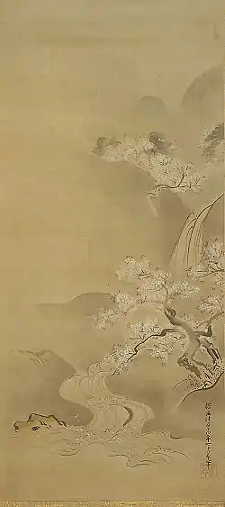 Paysage au printemps, encre et peinture sur soie de Kano Tan'yu.