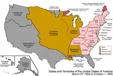 - 1er octobre : le territoire acquis lors de la vente de la Louisiane est divisé entre le district de la Louisiane, temporairement placé sous l'autorité du Territoire de l'Indiana, et le Territoire d'Orléans, organisé, qui correspond à l'actuelle Louisiane et une petite partie du Texas[4]. La frontière ouest du Territoire d'Orléans provoque un conflit avec la Nouvelle-Espagne à propos d'une région située entre la Sabine à l'ouest et l'Arroyo Hondo à l'est, qui sera plus tard connue sous le nom d'État libre de la Sabine. Le traité d'Adams-Onís confirmera la souveraineté américaine sur la zone en 1819.
