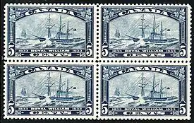 Bateau à vapeur Royal William représenté sur un timbre 100 ans plus tard