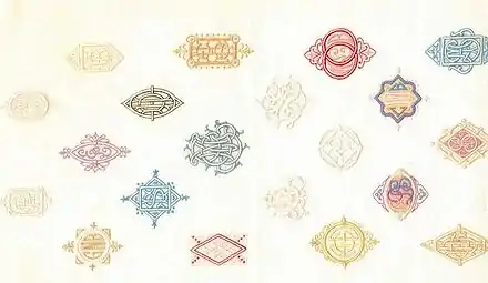 Broderie de Fontenoy : cadre d'échantillon, imprimé par le brodeur pour tester une nouvelle brodeuse et aussi pour apprendre les différents styles de monogrammes.