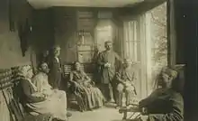 Le docteur Liébeault debout (à gauche) parmi ses patients dans sa clinique de Nancy en 1873.