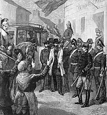 - 22 juin : loi d'exil bannissant du sol français les chefs des familles royales et impériales ayant régné sur la France ; Boulanger raye aussitôt des cadres de l'armée le duc d'Aumale, le duc de Chartres, le duc d'Alençon, le duc de Nemours et le prince Murat[2]. Le duc d'Aumale publie le 12 juillet une lettre de protestation au président Jules Grévy qui lui vaut une expulsion immédiate[20].