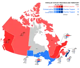 - 11 juillet : Wilfrid Laurier devient le premier canadien français à être le Premier ministre du Canada. Il renonce à la politique libre-échangiste de Mackenzie et se rapproche du Royaume-Uni par une politique de droits préférentiels.