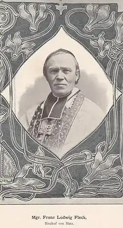- à Metz : François-Louis (Franz-Ludwig) Fleck, né le à Niederbronn-les-Bains (Alsace), ordonné évêque le . Il est le centième évêque de Metz de 1886 à 1899.
