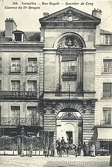 En 1914, le régiment est caserné à Versailles, rue Royale, au quartier de Croy.
