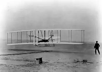 - 17 décembre : Wilbur Wright et Orville Wright effectuent un vol sur près de 260 mètres en 59 secondes à Kill Devil Hill, près de Kitty Kawk en Caroline du Nord. Ce lieu fut choisi en raison des vents forts qui y soufflent en cette saison et qui aidèrent au décollage de leur « Flyer »[2].