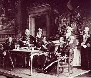 Le cardinal Gaspari et le premier ministre Mussolini avant la signature des accords du Latran.