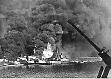 Attaque aérienne allemande contre la flotte anglo-américaine dans le port de Bari.
