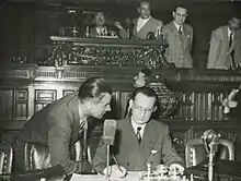 De Gasperi lors de la première session de l'Assemblée constituante et de l'élection des membres du Bureau provisoire.