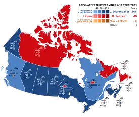 - 31 mars : élection fédérale. John Diefenbaker (progressiste-conservateur) est réélu Premier ministre fédéral.