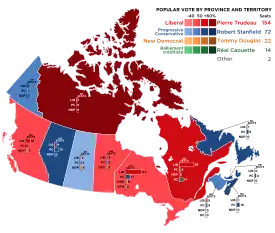 - 25 juin : élection fédérale. Les libéraux menés par Pierre Elliott Trudeau remportent les élections.