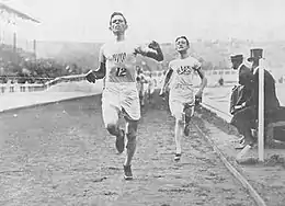 En 1908, lors des Jeux olympiques de 1908, à Londres, l'Américain Mel Sheppard s'impose sur 1 500 m (4 min 3 s 4, record olympique) quelques jours avant de réitérer son exploit sur 800 m. Les Britanniques Harold A. Wilson et Norman Hallows se classent respectivement deuxième et troisième de l'épreuve[8].