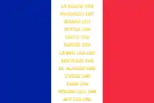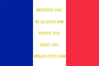 La Marne 1914 Pogradec 1917 Skumbi 1917 Bofnia 1918 Uskub 1918 Danube 1918 Levant 1920-1927 Erythrée 1941 El Alamein 1942 Tunisie 1943 Paris 1944 Strasbourg 1944 AFN 1952-1962 Koweit 1990-1991 |