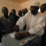 - Le , le président Amadou Toumani Touré a annoncé au cours d’un déplacement à Nioro du Sahel sa candidature à l’élection présidentielle du 29 avril 2007[23], tandis que La Convention sociale démocrate (CDS) a investi son président Blaise Sangaré[24]et l’Union nationale pour la république (UNPR) a investi Modibo Sangaré[25] comme candidats à cette élection.