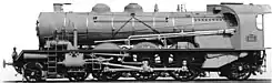 - une locomotive à simple expansion avec quatre cylindres en batterie, un timbre assez bas (12 atmosphères)[3] et un surchauffeur Schmidt entre les tubes, elle reprenait une conception essayée avec succès sur la Type 10 belge ou la S 10 prussienne.