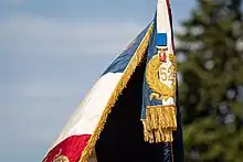 Il porte, cousues en lettres d'or dans ses plis, les inscriptions suivantes[8]: GRANDE GUERRE 1914-1918