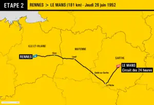 La 2e étape du Tour de France 1952 se déroule le entre les villes de Rennes, qui accueille le Tour pour la sixième fois, et Le Mans, première fois ville-étape du Tour de son histoire. Le parcours traverse les départements d'Ille-et-Vilaine, de la Mayenne et de la Sarthe sur une route principalement plane et longue de 181 km. Il passe notamment par les villes de Vitré, Laval, Sablé-sur-Sarthe et La Flèche.