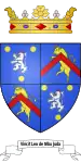 Ecartelé : au premier et au quatrième d'azur au lion d'argent armé, lampassé et couronné de gueules, accompagné de trois besants d'or, au deuxième et au troisième d'azur au taureau furieux d'or, au chevron cousu de gueules brochant sur le tout[7].