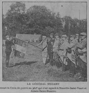 Ce glorieux fait d'armes valut au 360e la citation suivante à l'ordre de l'Armée, citation qui comporte l’attribution de la Croix de guerre à son drapeau : Le Général commandant la 10e Armée cite à l'ordre de l'Armée le 360e R. I., sous les ordres du lieutenant-colonel Piazza : « Les 27 et 28 mai, a, sous l'habile et énergique impulsion de son chef, enlevé plusieurs tranchées, le cimetière et le village organisé, avec un allant, une fougue, une énergie au-dessus de tout éloge, faisant 400 prisonniers. S'est maintenu sur les positions conquises, malgré un bombardement d'une extrême violence et une contre-attaque de l'ennemi ».