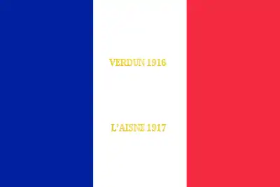 Les noms des batailles s'inscrivent en lettres d'or sur le drapeau[3]: