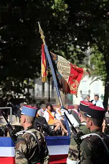 Il porte, cousues en lettres d'or dans ses plis, l'inscription[8],[9] : AFN 1952-1962.