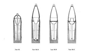 Obus anti-blindage à pointe molle avec tête aérodynamique[2]. Ce genre d'obus est optimisé pour maximiser la vitesse de sortie et garder une forte puissance de pénétration en empêchant la désintégration de l'ogive à l'impact en ajoutant une pointe en métal plus mou. Comme ce genre de munition est instable en vol, on lui adjoint une pointe aérodynamique pour augmenter la portée et la précision. Capable de percer jusqu'à 41 mm de blindage incliné à 30° à 100 m, et 35 mm à 1 000 m.