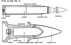 APCNR sous-calibré en fer doux, développé en 1943 pour remplacer la munition au tungstène[6]. « W » ne veut pas dire Wolfram, mais bien Weicheisen, « fer doux ».