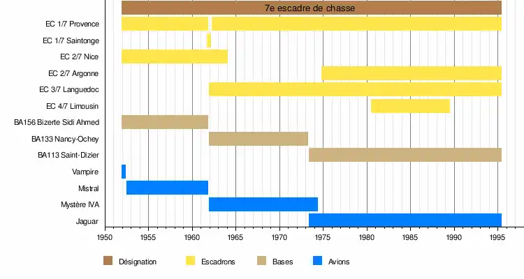 - Escadron de chasse 1/7 Provence (17/11/1951 au 01/12/1961) et (01/03/1962 au )