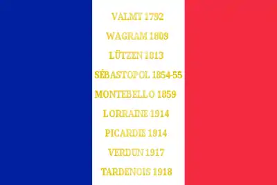 Valmy 1792 Wagram 1809 Lutzen 1813 Sébastopol 1854-55 Montebello 1859 Lorraine 1914 Picardie 1914 Verdun 1917 Tardenois 1918 |