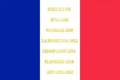 Zurich 1799 Iéna 1806 Wagram 1809 Moskowa 1812 Champagne 1915 Flandres 1918 AFN 1952-1962 |