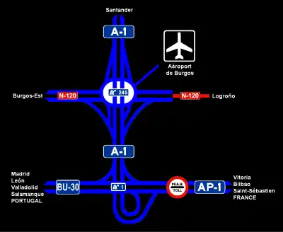 Près d'ici, la Rocade de Burgos BU-30 nous permet d'accéder aux autoroutes suivantes :