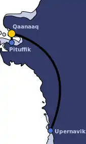 Schéma des destinations desservies depuis l'aéroport de Qaanaaq.
