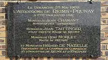 L'aérodrome a été inauguré le 25 mai 1969 par Jean Chamant (Ministre des Transports), Jean Taittinger (député-maire de Reims), Rémi Morlet (maire de Prunay) et Hérard de Nazelle (président de la CCI de Reims et d’Épernay).