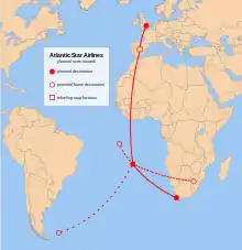 | Johannesbourg OR Tambo, Windhoek Hosea Kutako[15],[16] Charter : RAF Ascension Island (date à définir) |