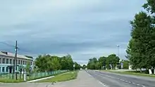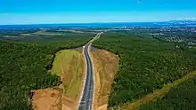 L'autoroute avec Sosnovka sur le côté.