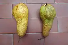 Son calibre est assez gros à gros, de forme très allongée, comme une calebasse, mais irrégulière.