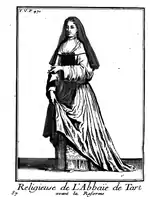 L’abbaye Notre-Dame de Tart[2] ou abbaye de Tard[3], située dans l'ancienne commune de Tart-l'Abbaye en Bourgogne, sur la rivière l'Ouche, à proximité de la commune de Genlis en Côte-d'Or, constitua la première maison féminine de l'ordre cistercien. Lors d'une réforme de l'ordre en 1623, la communauté des bernardines fut déplacée de Tart à un couvent de la rue Sainte-Anne à Dijon en Côte d'Or. Il ne reste aujourd'hui à Tart que quelques ruines[note 1] de ce qui fut l'abbaye mère des bernardines fondée en 1132. Le couvent rue Sainte-Anne à Dijon abrite quant à lui le musée de la vie bourguignonne Perrin de Puycousin et l'église du monastère abrite le musée d'Art sacré de Dijon.