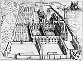 L'abbaye Saint-Wandrille dans le Monasticon Gallicanum. Gravure du XVIIe siècle.