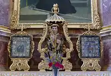 Le buste de saint Cyriaque constitue la richesse majeure de l'église. Le tronc en chêne du XIIe siècle abrite les reliques dans son buste, de même sans doute certaines bandes métalliques. Le pape Léon IX lors de son passage à Altorf a rapporté une relique de saint Cyriaque, "un bras". Lors de la première moitié du XIIIe siècle, le buste fut revêtu partiellement de lames d'argent, puis par la suite des médaillons en cuivre doré. À l'origine, le reliquaire était abrité dans une cavité céphalique obturé par la calotte crânienne. Par la suite on pratiqua dans le dos une cavité rectangulaire fermée par un portillon pour y loger des reliques et la calotte crânienne fut collée. En 1883-1884, ainsi qu'en témoigne l'inscription peinte sur le socle ajouté à cette date, le buste fut restauré par Martin Vogeno d'Aix-la-Chapelle, car il restait plus qu'un tiers des plaques d'argent et des médaillons manquaient. L'exposition à baldaquin sur laquelle est disposé le buste date des environs de 1730. Le socle présente une lunette qui montrent une ou plusieurs reliques, entourée de palmes et de deux instruments du martyre du saint sculptés en bas relief. Les deux reliquaires qui encadrent le buste représentent saint Benoît et saint Joseph portant l'enfant. ils datent à peu près de la même époque que l'exposition du buste saint Cyriaque, le saint patron de l'abbaye, supplante ceux de la dédicace du Xe siècle : saint Barthélemy et saint Grégoire Ier. Depuis lors l'abbaye est devenu un lieu de pèlerinage pour les épileptiques, les fiévreux et les malades des nerfs.