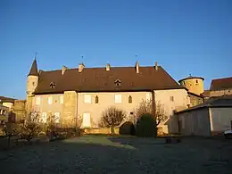 Le logis a pris la place de bâtiments préexistants, dont une possible l’infirmerie. La grande tour carrée encastrée peut avoir fait partie des fortifications du monastère du Xe siècle.