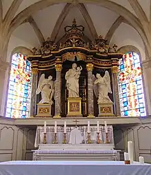 - « Retable, 3 statues : la Vierge entre deux anges », notice no PM88000397, sur la plateforme ouverte du patrimoine, base Palissy, ministère français de la Culture.