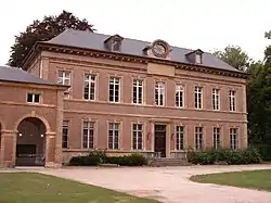 L'ancien « bâtiment des hôtes » de l'abbaye, derrière lequel on voit le clocher de l'église Saint-Denis. | ||
