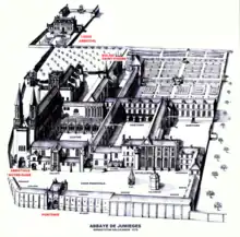 L'abbé Robert de Jumièges dit « Champart » fait reconstruire le monastère (1040–1052). La nef de l'église abbatiale bien que respectant le plan bénédictin et la triple élévation normande introduite à Bernay, opte pour un plan à déambulatoire sans chapelles rayonnantes comme à l'abbaye du Mont-Saint-Michel[14].