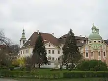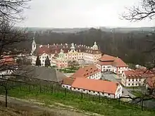 L'abbatiale gothique consacrée en 1244 brûle en 1683. Elle est reconstruite en style baroque en gardant les fondations et certaines parties extérieures.