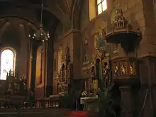 L'intérieur de l'église est peint de fresques en style nazaréen en 1859, puis l'église est restaurée à la fin du XIXe siècle, jusqu'en 1921.